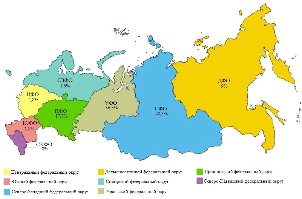 По территориальному распределению количества торгов в металлургии по сравнению с другими отраслями произошел перенос плотности на регионы Поволжья, Урала и Сибири. По мнению аналитиков B2B-Center, это может быть связано с сосредоточением в этих регионах промышленных предприятий.