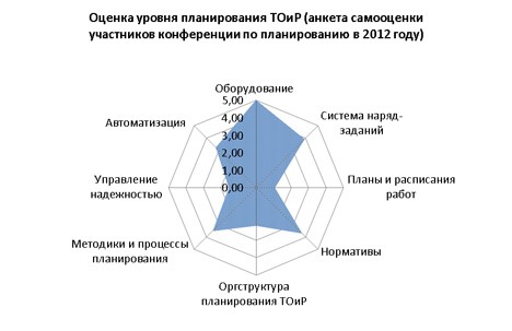 В ходе экспресс - анкетирования участников была получена оценка уровня системы планирования ТОиР на их предприятиях, итоговая диаграмма ниже.