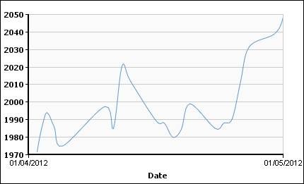 Динамика цен на алюминий на ЛБМ (cash) c 01.04.2012 г. по 30.04.2012 г.: