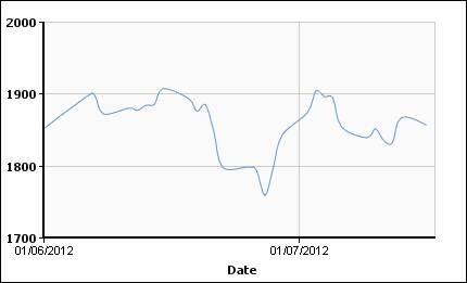 Динамика цен на алюминий на ЛБМ (cash) c 01.06.2012 г. по 15.07.2012 г.: