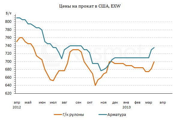 РћСЃРЅРѕРІРЅРѕР№ проблемой американского рынка специалисты называют избыток предложения. РџРѕ данным American Iron & Steel Institute, РІ январе 2013 РіРѕРґР° национальные металлургические компании произвели максимальный объем металла Р·Р° последние пять месяцев. Р? хотя РІ феврале объем выпуска сократился, РЅР° складах металлургических компаний скопились значительные объемы продукции.