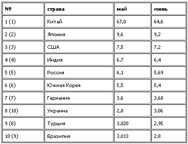 Согласно данным World Steel Association, десятка ведущих стран-производителей стали в мае 2013 г. претерпела изменения.